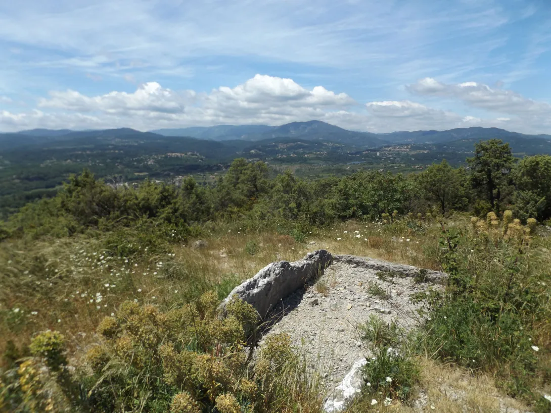 Au sommet du Ranc du Guilhaumet, le vestige de la "tombe du géant" prend une forme trapézoidale, de pierres calcaires posées sur champs, délimitant un amas de pierres plus petites, de remblais. Ce point est le centre d’où rayonnent les limites des parcelles cadastrales.