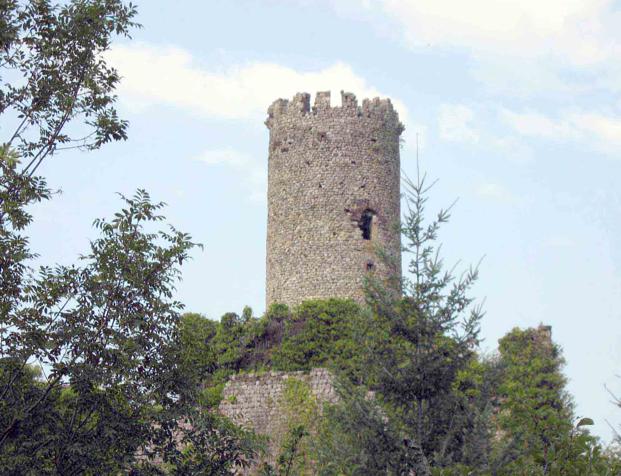 Tour de Chapdenac ancien point de guet et poste avancé seigneurial sur la vallée de l’Ardèche, domine le Sigadou. Tour privée, elle ne se visite pas. * Vers 970, un castrum (en bois ) est construit sur la colline. Il "serait" l’œuvre d'Audigier Iter de Géorand. * Au milieu du 12ème siècle, un lieu de culte (chapelle ou petite église) dédié à Saint-Pierre est aménagé dans la basse cour du château. Il relève de l’abbaye Vellave de Saint-Chaffre du Monastier. * En 1217, dans l'enceinte du château, les enfants de la famille Iter de Géorand approuvent la donation de terre (?) faite à l’abbaye de Mazan. * Au 13ème siècle, Béraud Itier de Géorand, marié à Béatrix Nibilia, est cité comme seigneur de Chadenac. * A la fin du 13ème siècle (?), Pierre Iter de Géorand (fils de Béraud et Béatrix) est seigneur de Chadenac. * Au 16ème siècle (1556 ?), Claude de Rivoire épouse Madeleine de Chadenac. Elle lui apporte en dot la seigneurie de Chadenac. * Au 17ème siècle, Christophe de la Rivoire est seigneur de Chadenac et de Baumes (à vérifier). * Au début du 21ème siècle, la découverte du site est libre et gratuite. La ruine n'étant pas sécurisée, le risque de recevoir une pierre ou de glisser est important. Soyez très prudents. .
